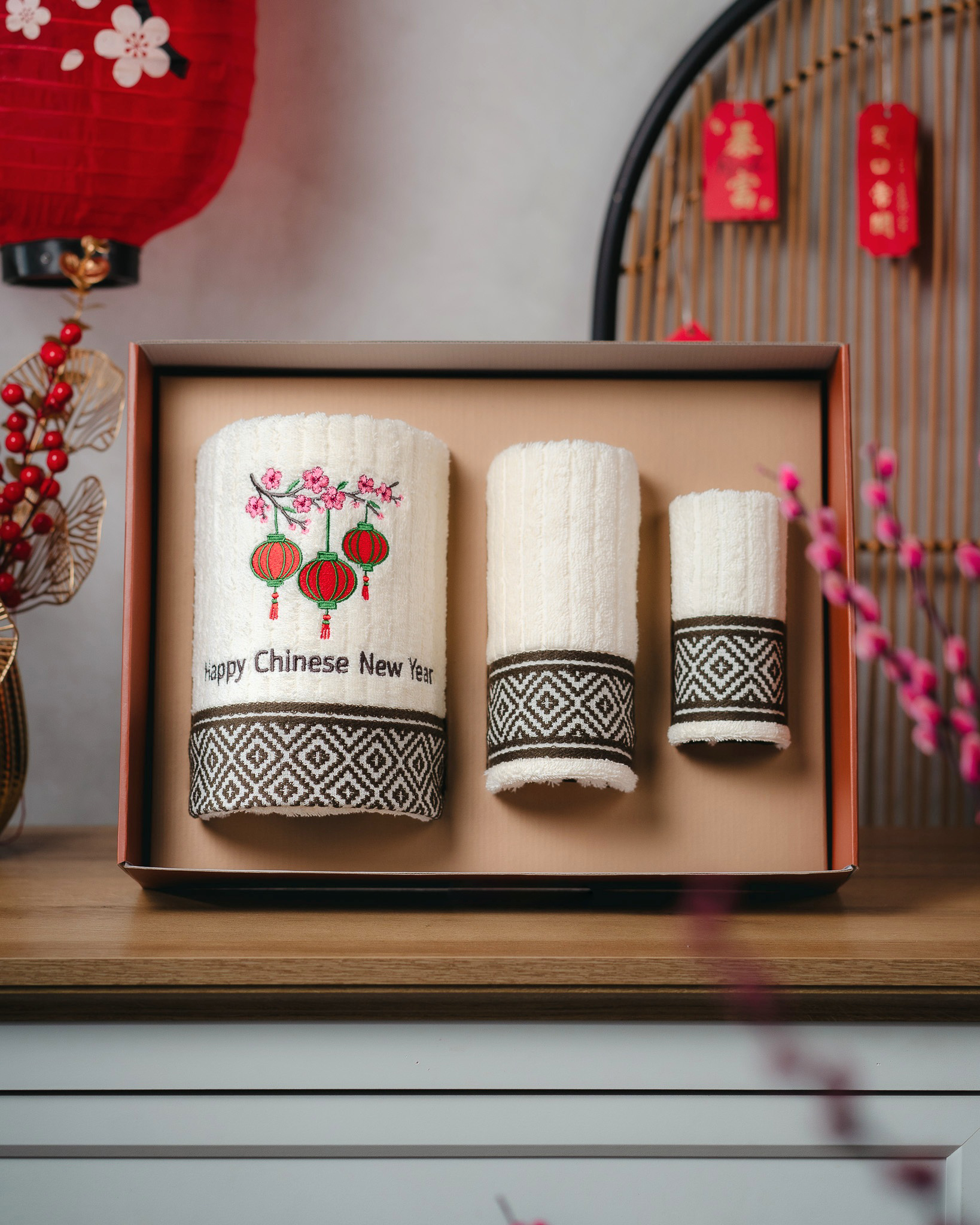 Hampers ini berisi perpaduan 3 ukuran handuk pilihan yang fungsional untuk kebutuhan sehari-hari, dipercantik dengan bordir eksklusif bernuansa Imlek yang memberikan sentuhan elegan dan berkelas.