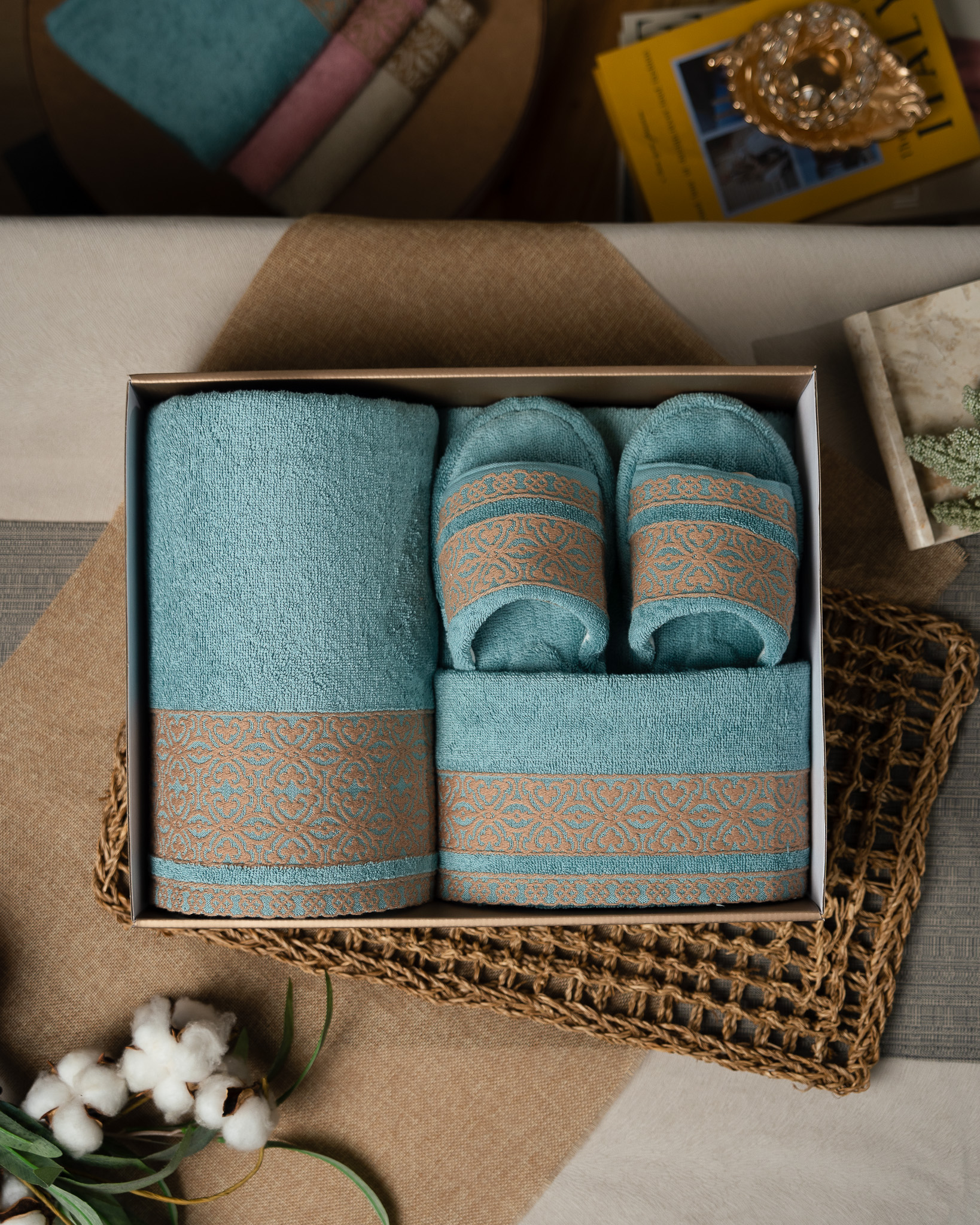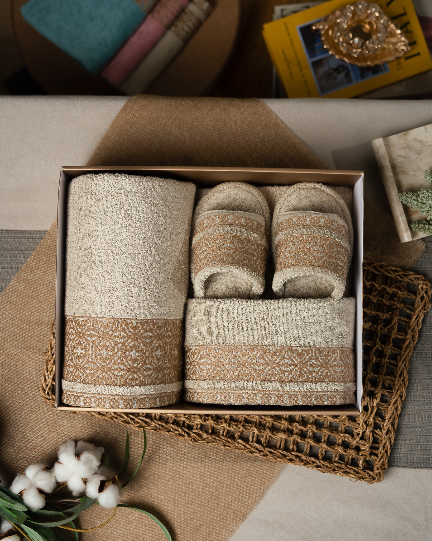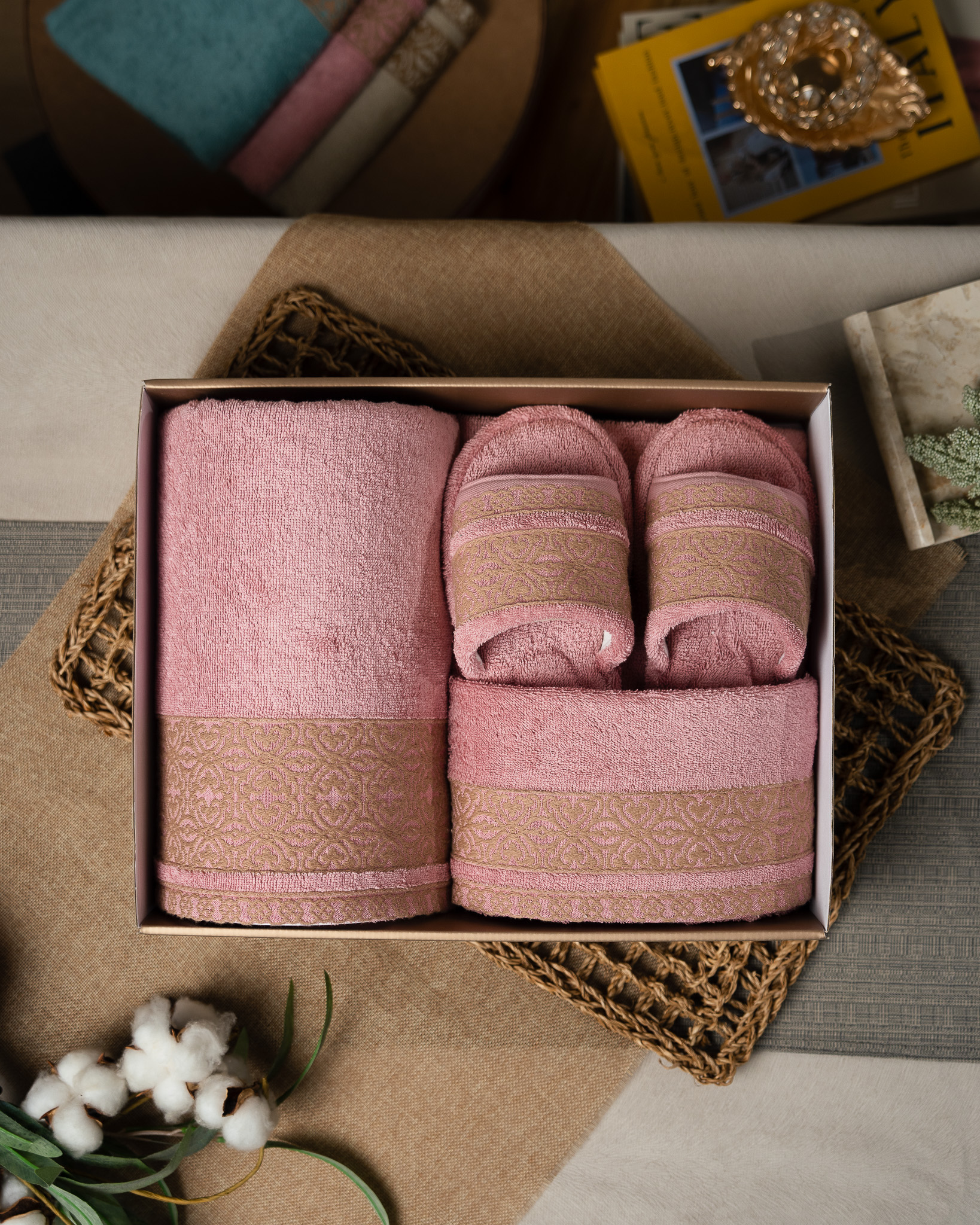 Rayakan momen spesial dengan Mirea 4in1 Gift Set—perpaduan sempurna antara kenyamanan premium dan sentuhan motif etnik klasik yang memikat. Detail pada list handuk menghadirkan kesan elegan dan berkelas, menjadikannya berbeda dari handuk biasa.