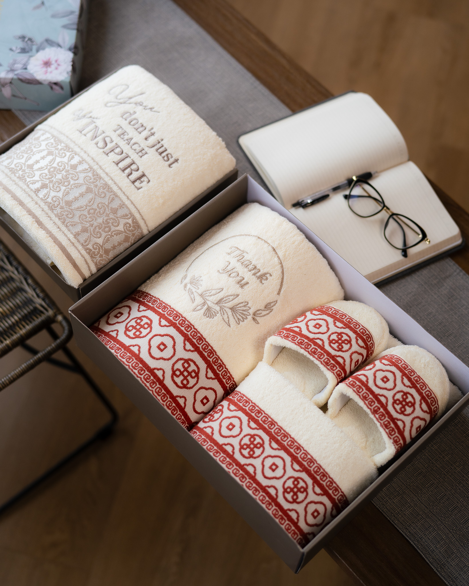 Crafted from premium, high-absorbency cotton with sophisticated artisan motifs, this collection is the ultimate gesture of appreciation for those who guide and balance our lives.