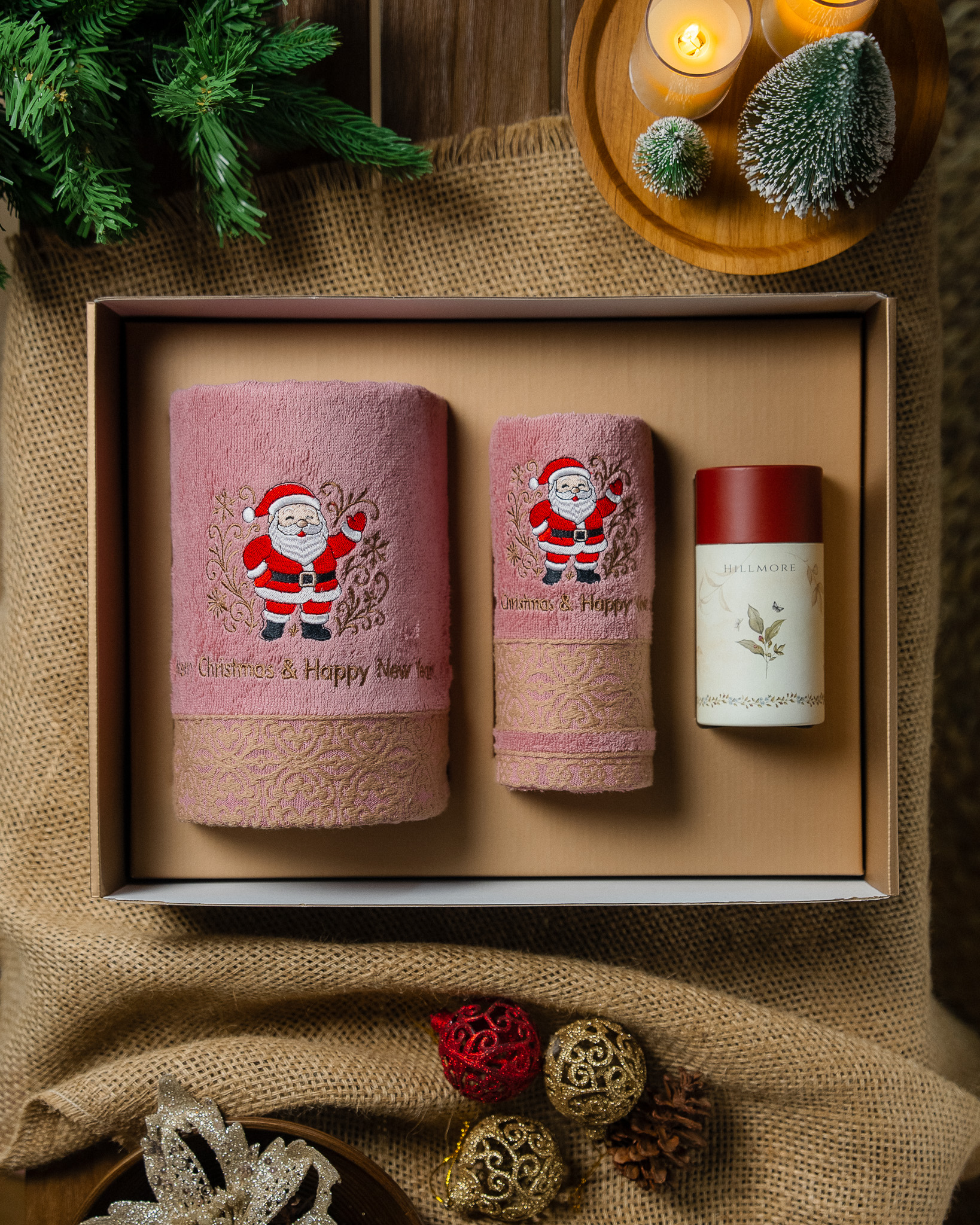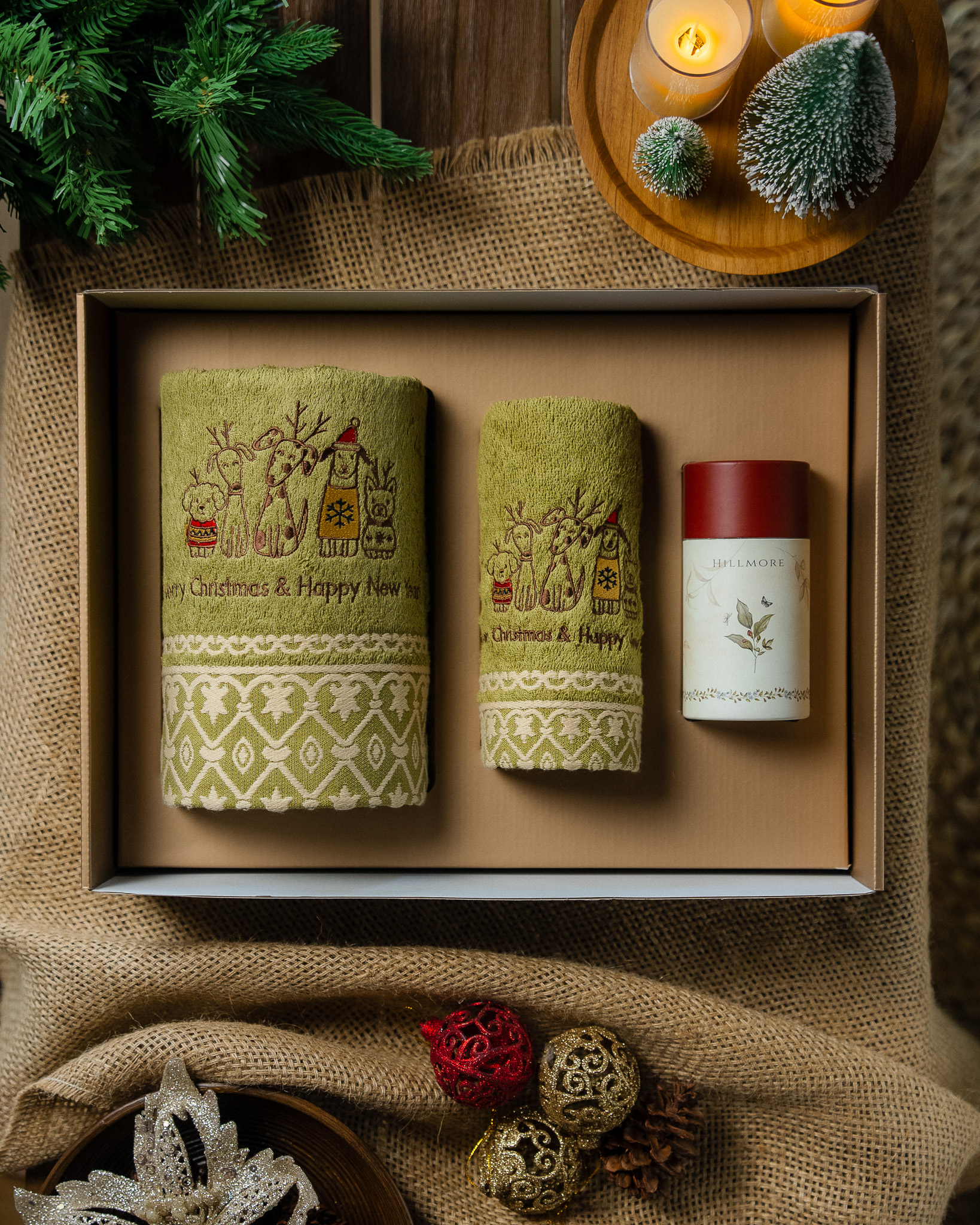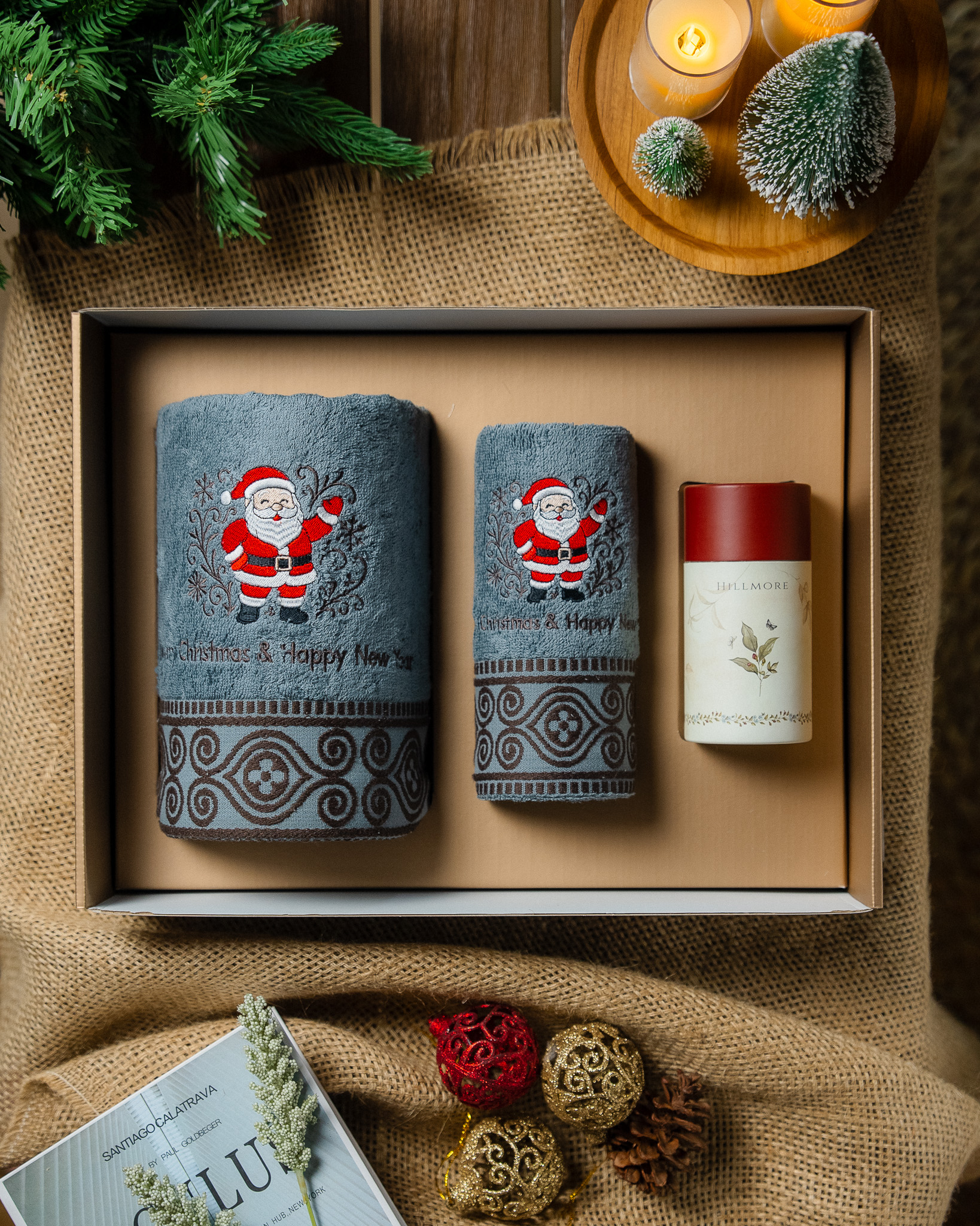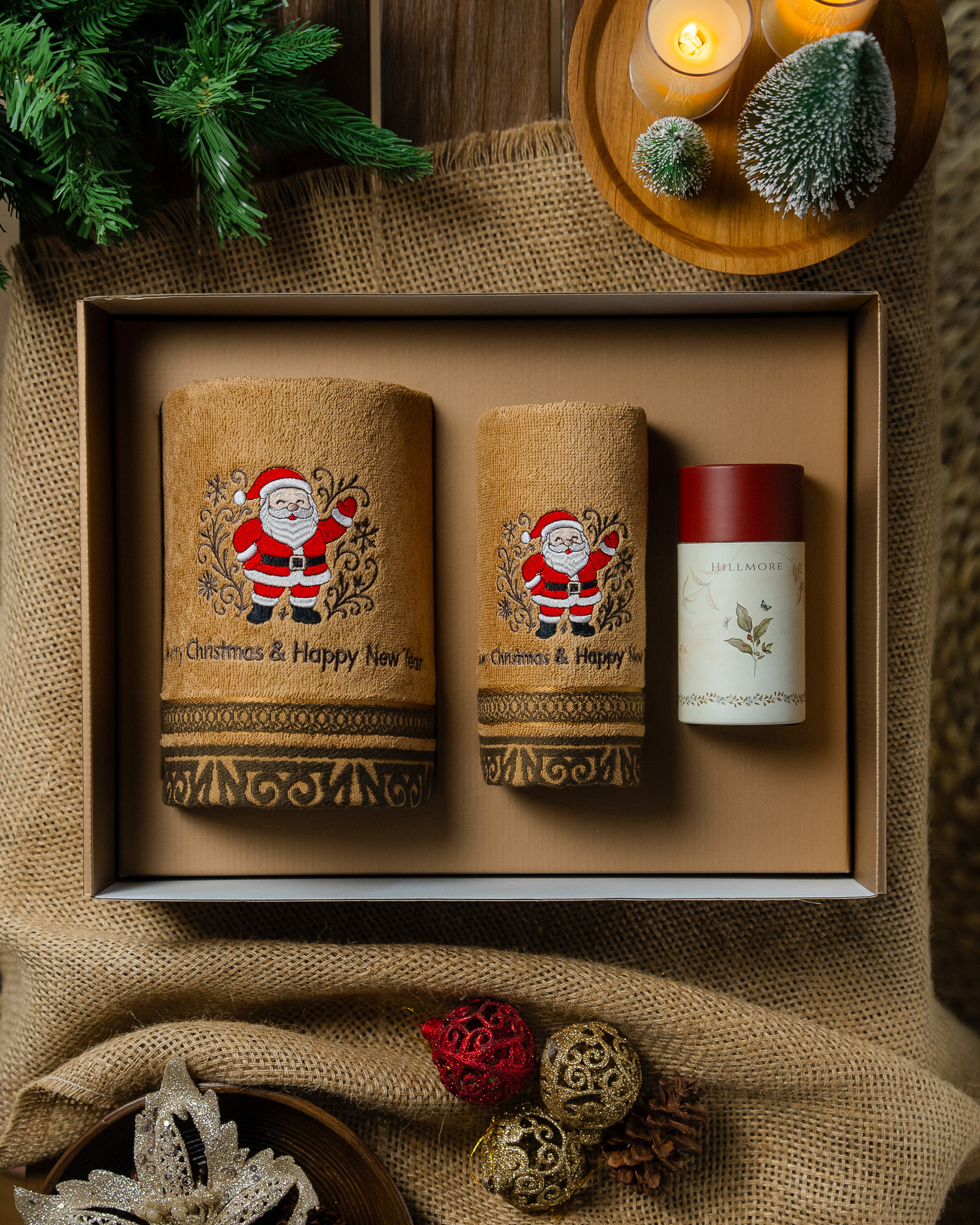 Each set features one premium bath towel, one sport towel, and homemade almond cookies, all beautifully arranged to create the perfect balance of comfort and delight. Crafted from soft, high-quality cotton, the towels offer a luxurious feel and lasting usefulness, while the freshly baked cookies add a heartfelt touch to the festive celebration.