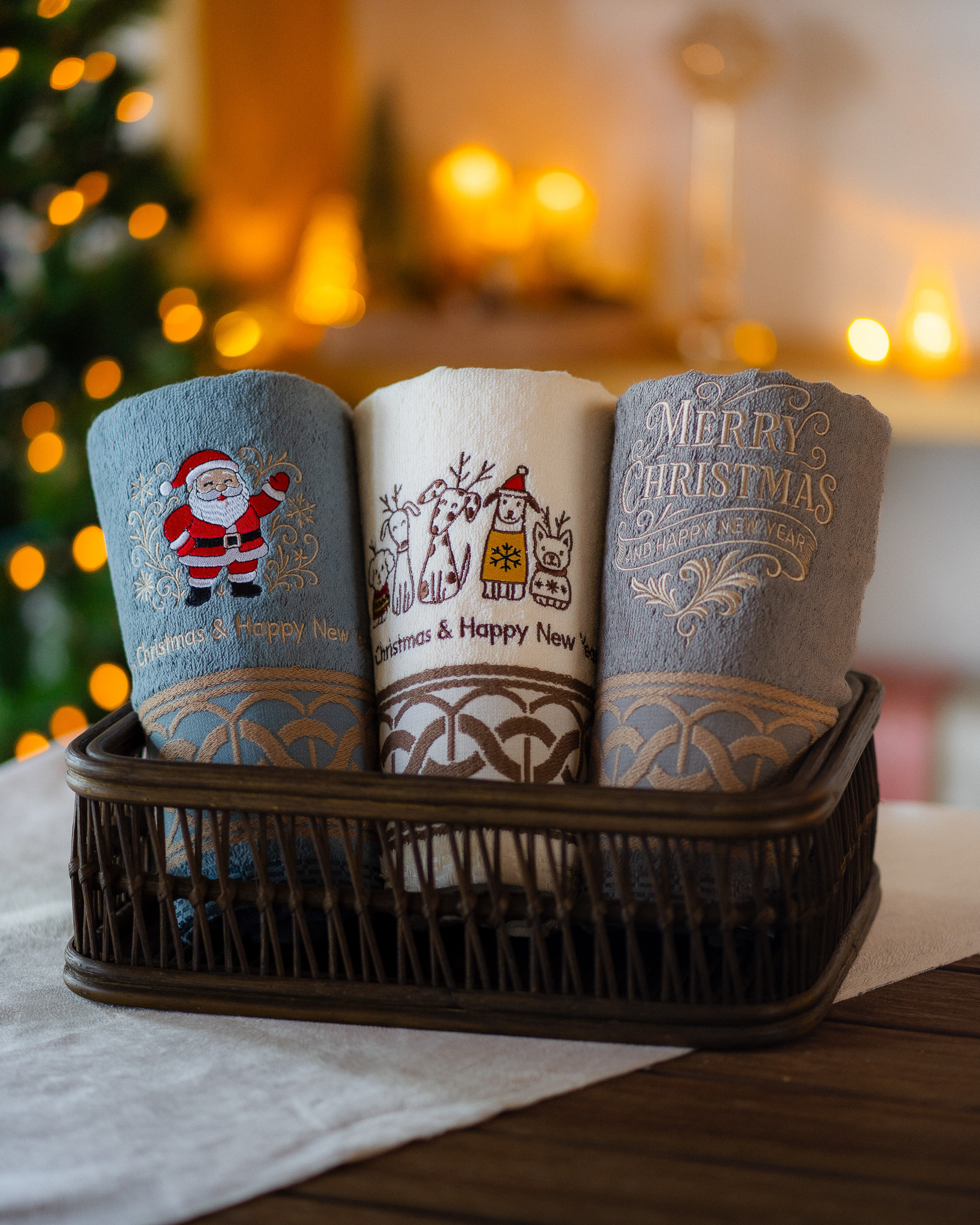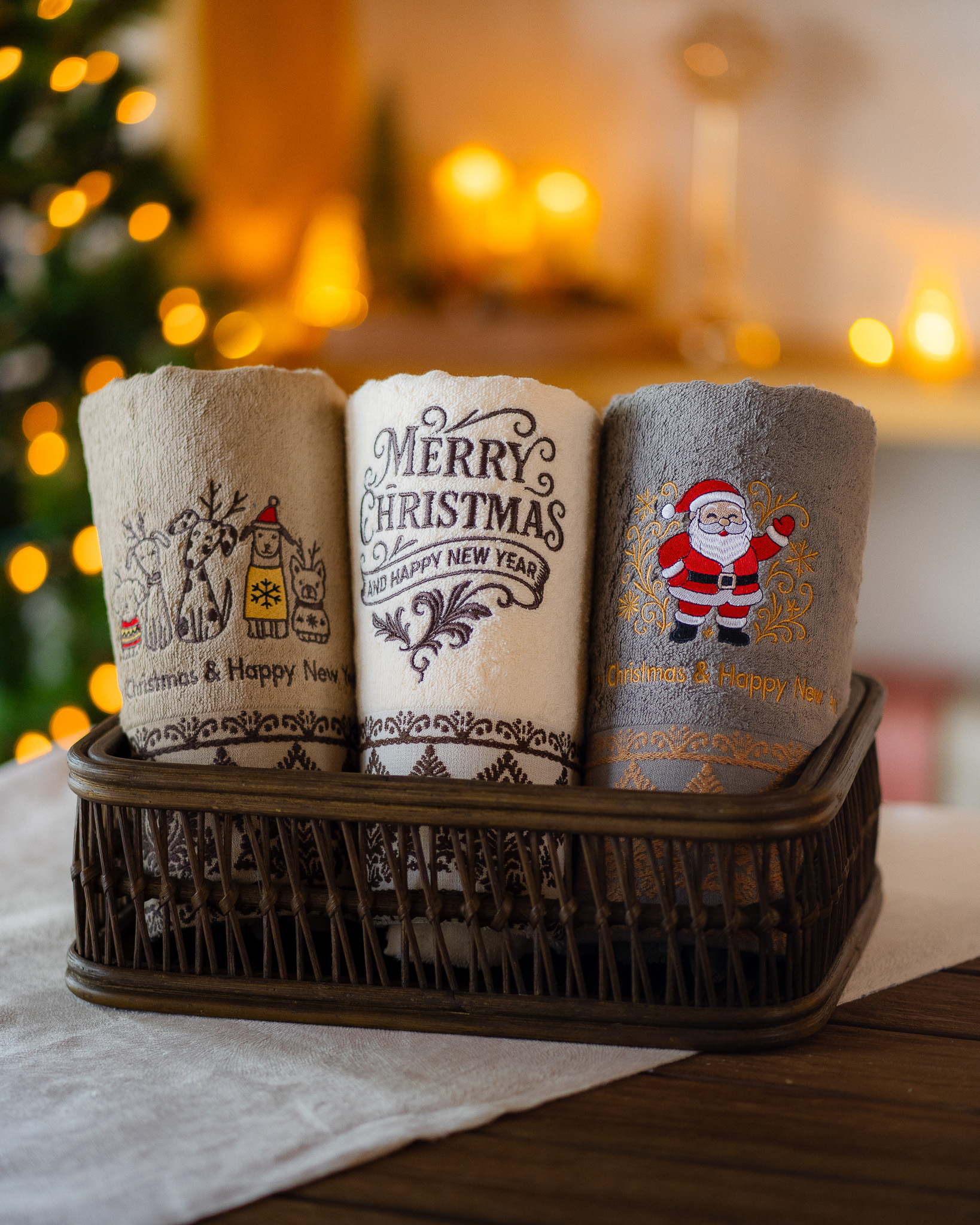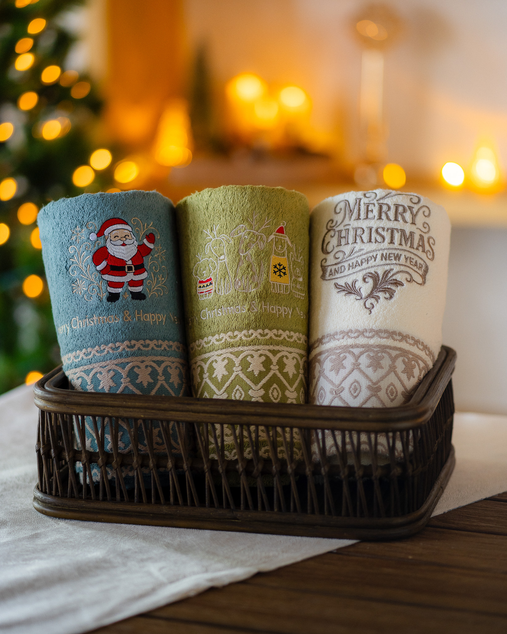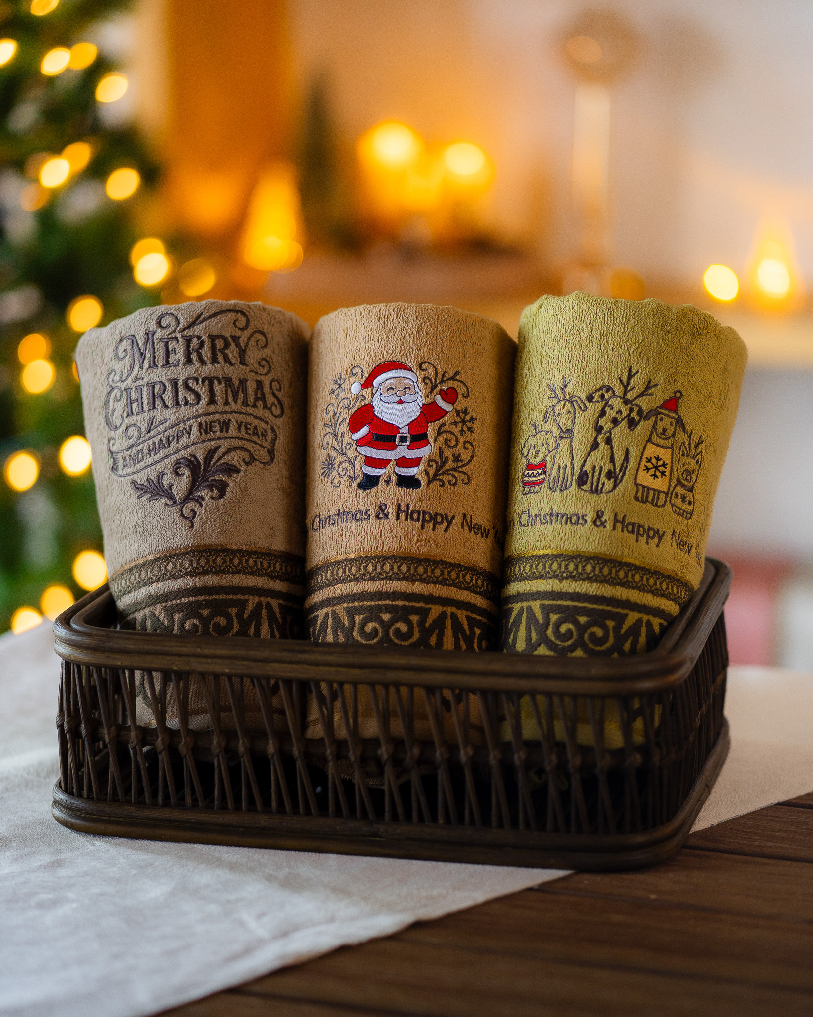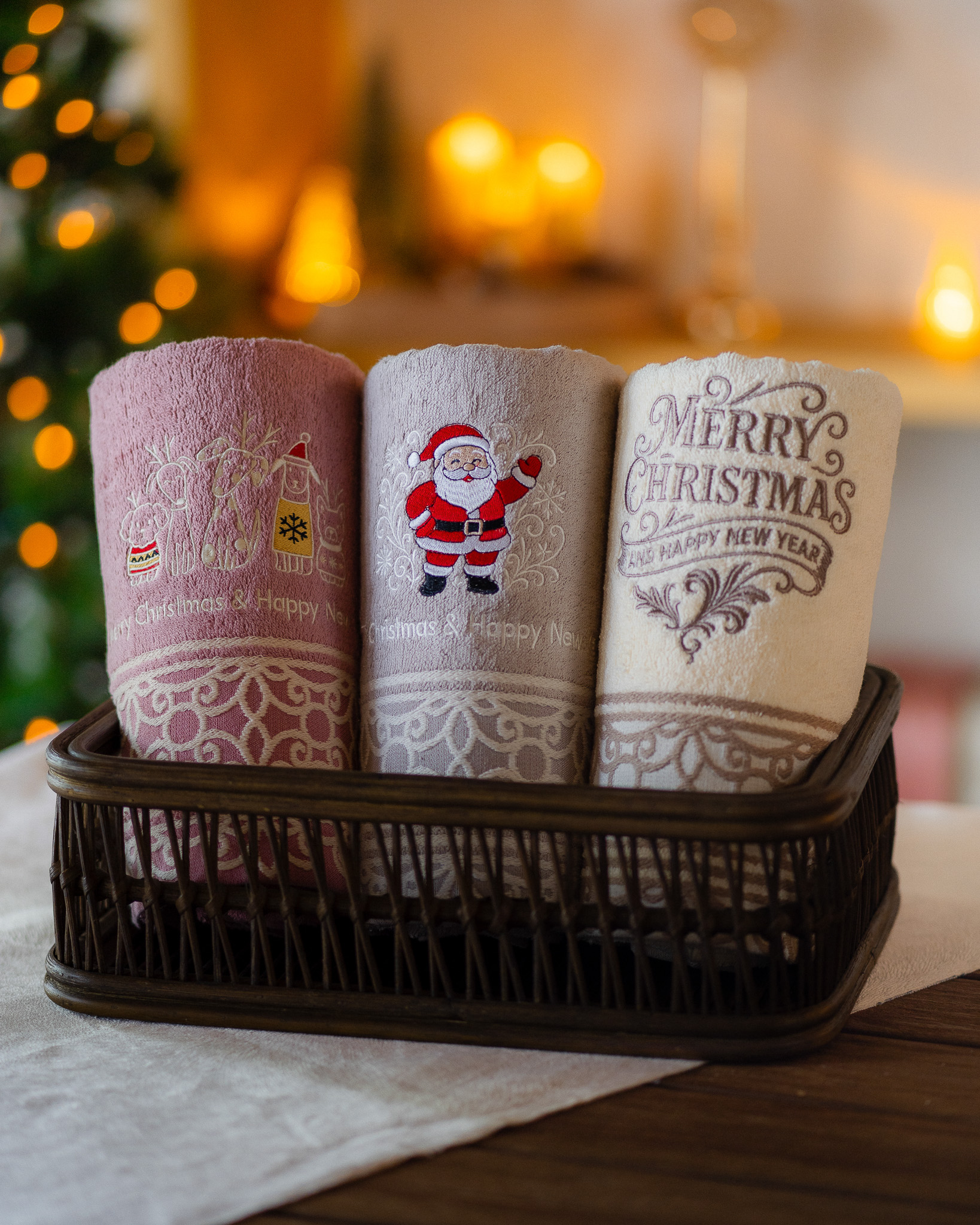 Each set features one premium bath towel, one sport towel, and homemade almond cookies, all beautifully arranged to create the perfect balance of comfort and delight. Crafted from soft, high-quality cotton, the towels offer a luxurious feel and lasting usefulness, while the freshly baked cookies add a heartfelt touch to the festive celebration.