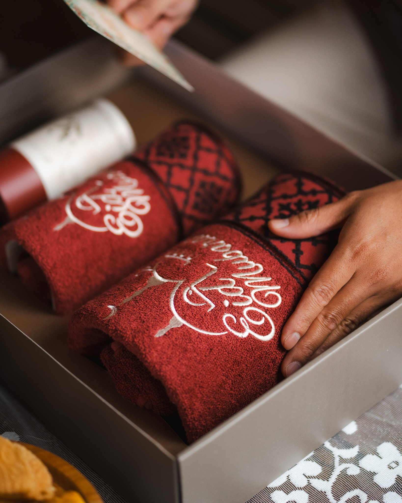 Featuring premium towels adorned with exclusive Eid Mubarak embroidery and complemented by homemade almond cookies, each element is selected to offer both comfort and delight. Beautifully presented in an elegant gift box, Bloom is a charming choice for family, friends, and meaningful connections during Eid.