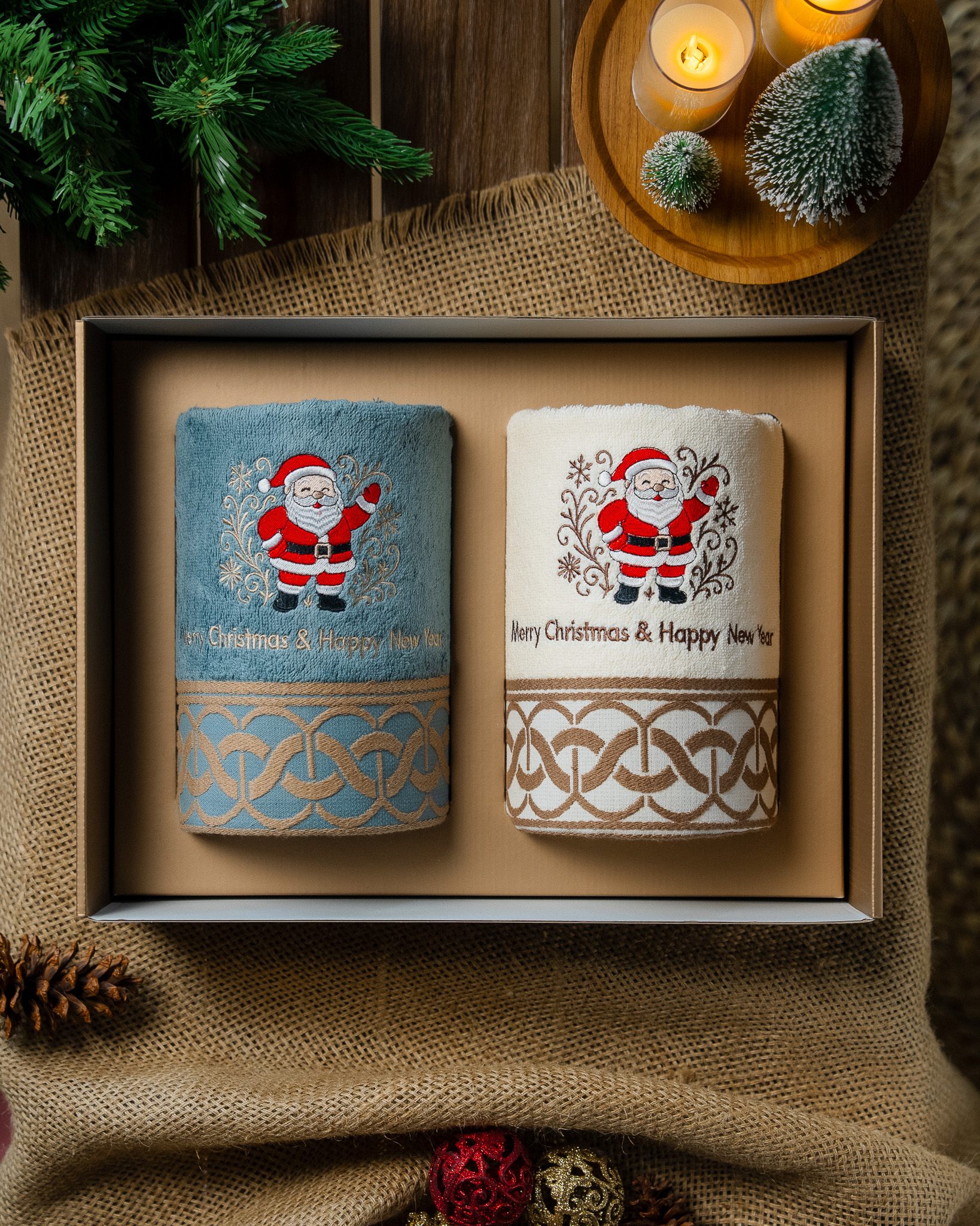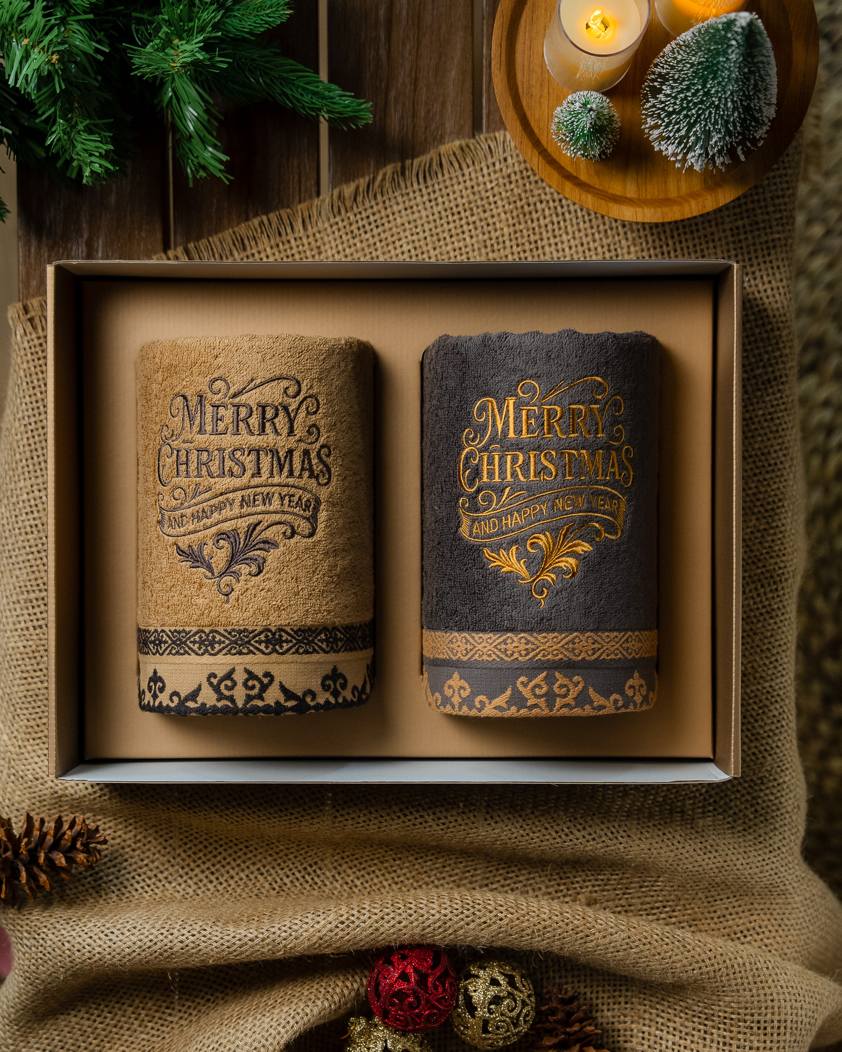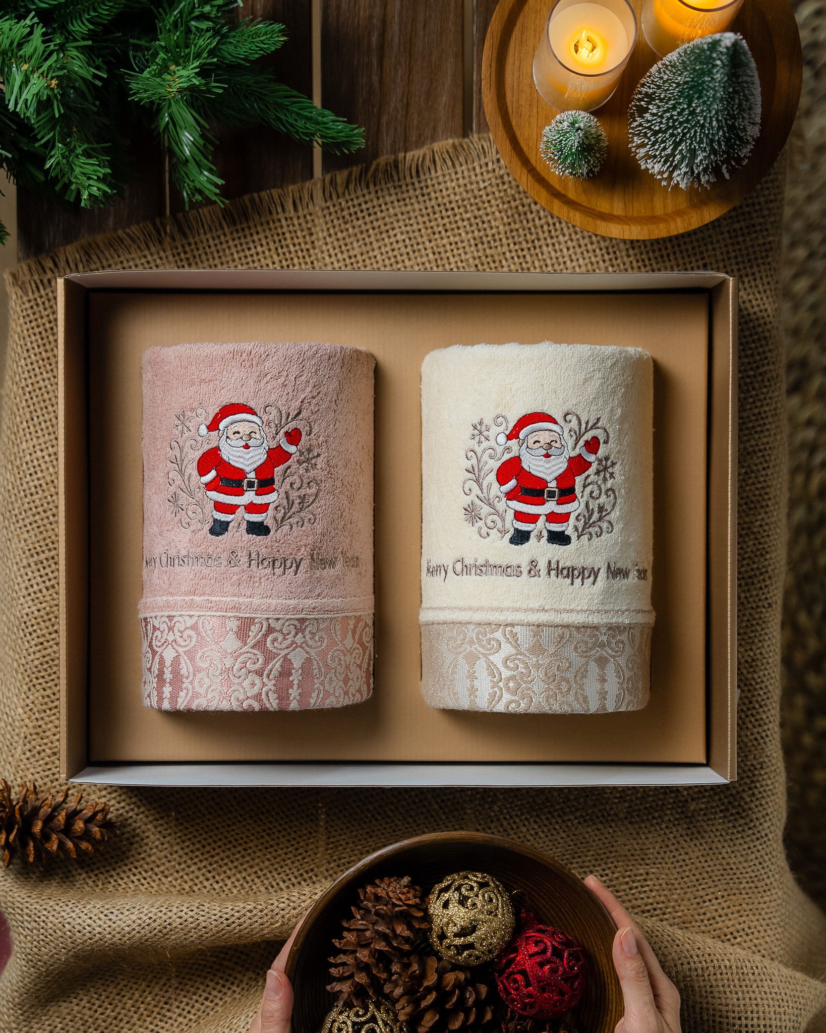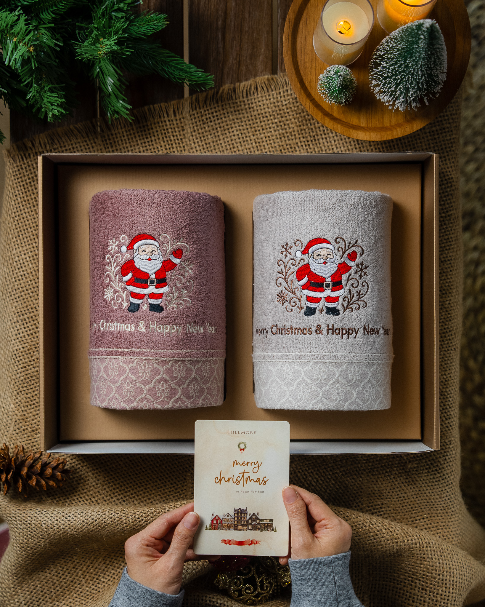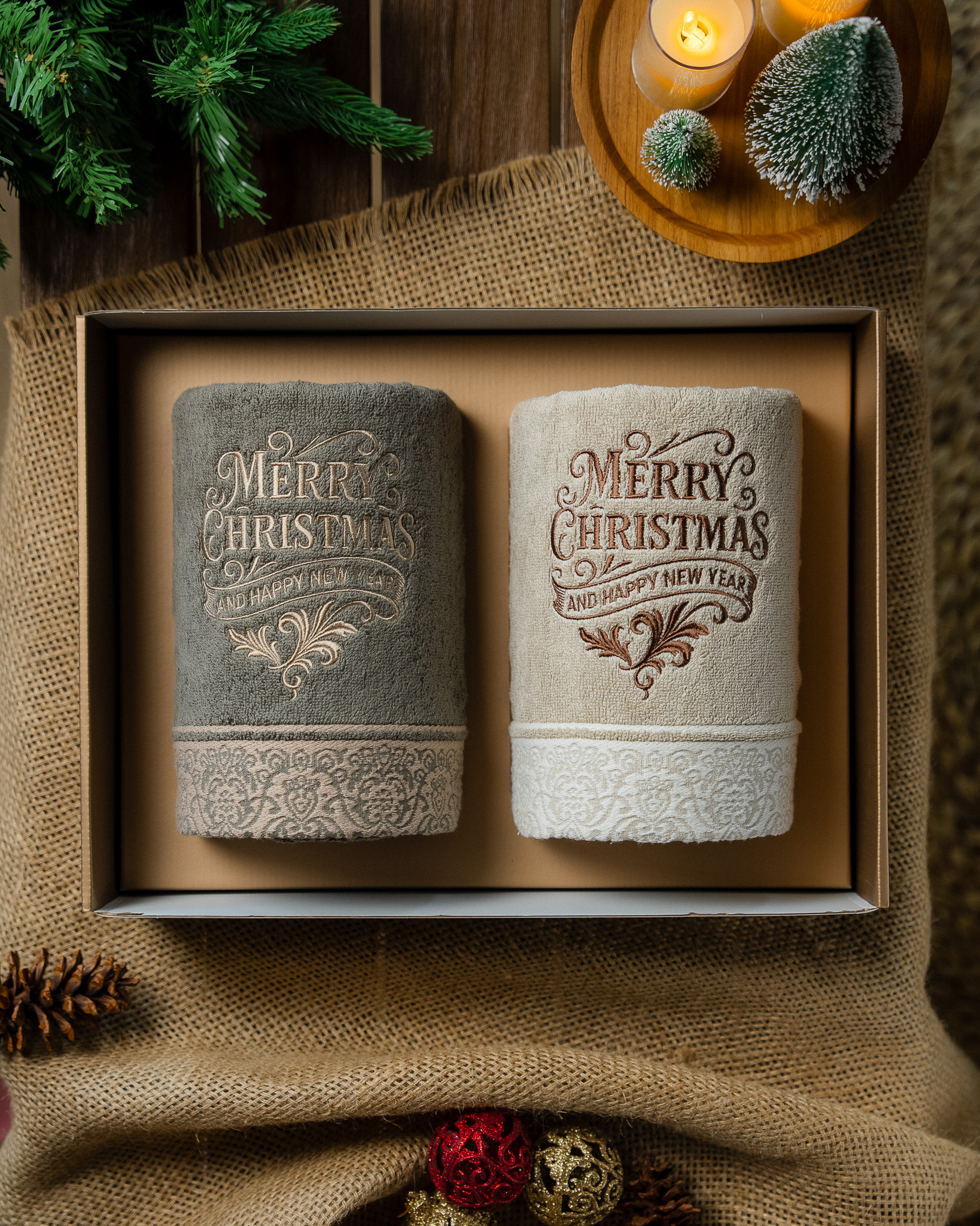 Each set includes two premium bath towels, crafted from high quality soft cotton for lasting comfort and absorbency. Every piece is adorned with exclusive Christmas embroidery and beautifully presented in a festive gift box complete with a matching greeting card.