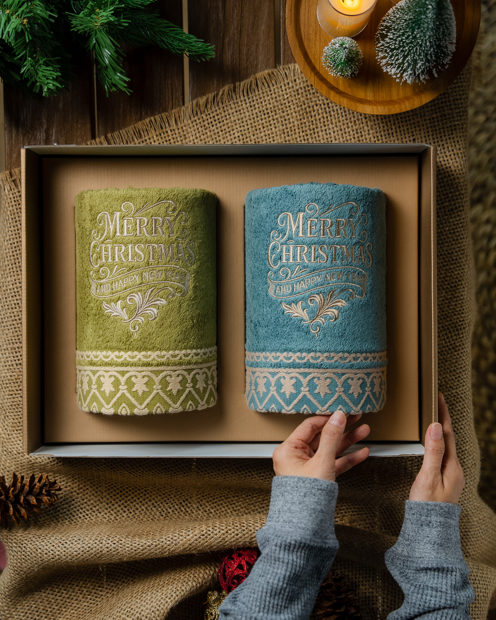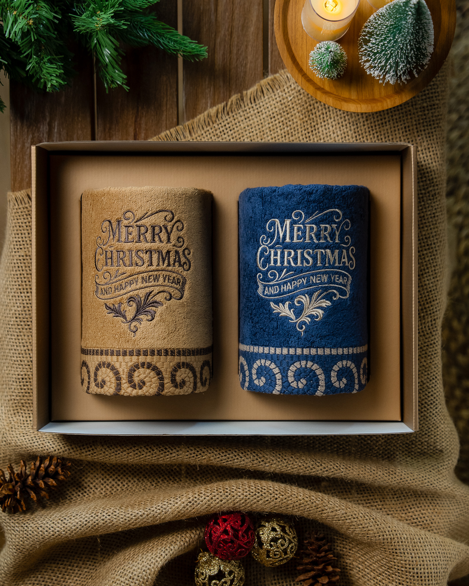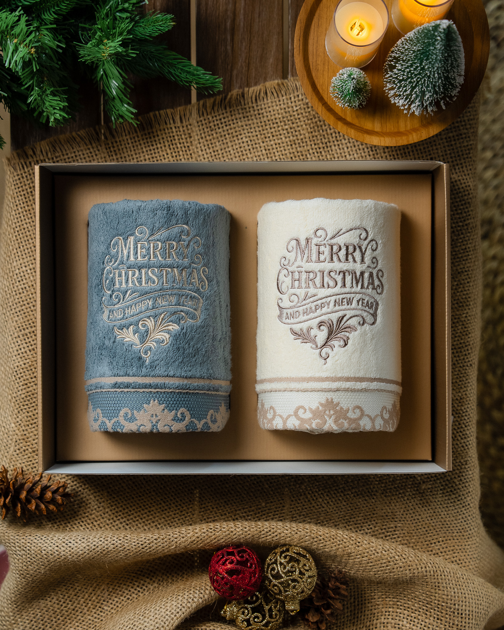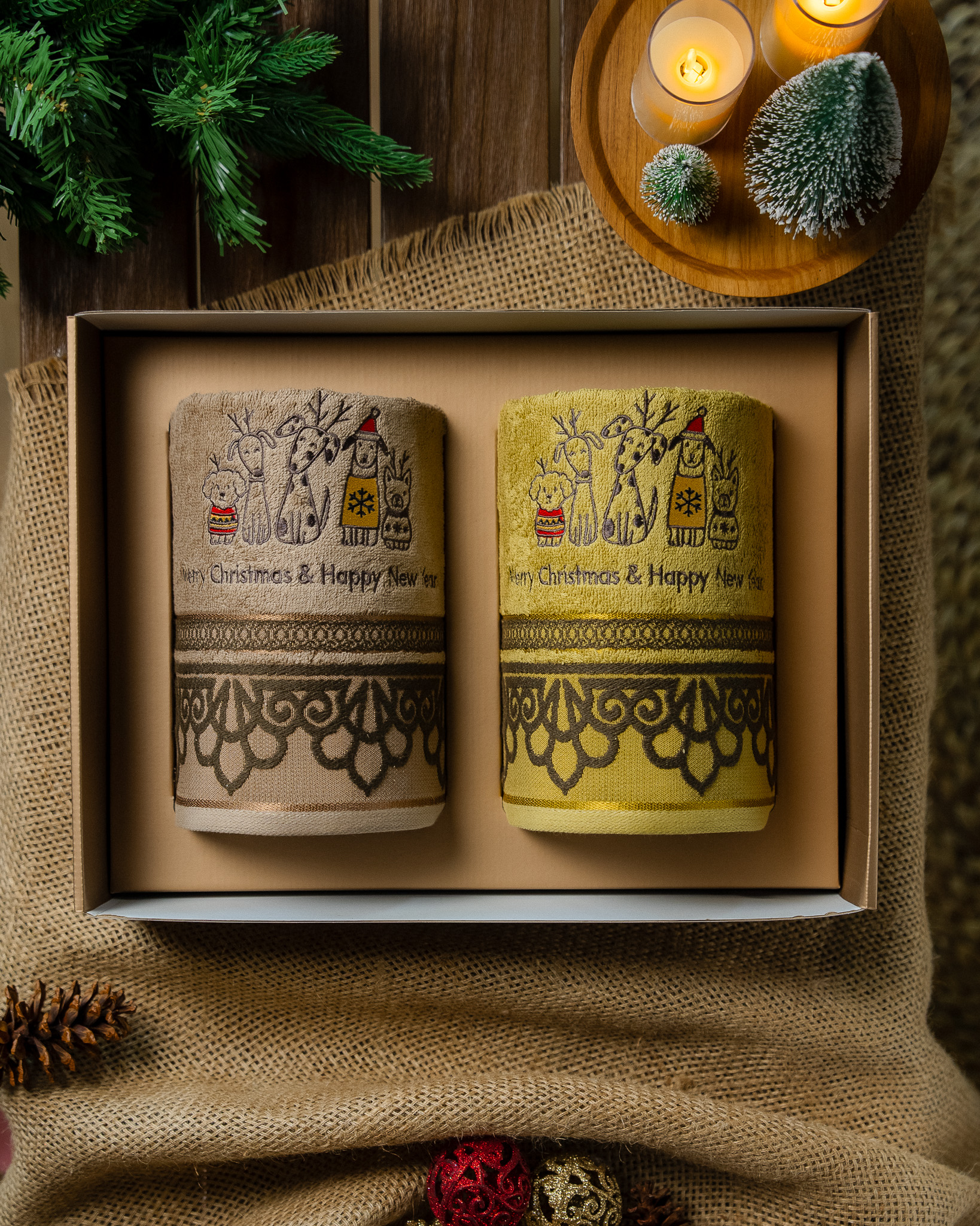 Each set includes two premium bath towels, crafted from high quality soft cotton for lasting comfort and absorbency. Every piece is adorned with exclusive Christmas embroidery and beautifully presented in a festive gift box complete with a matching greeting card.