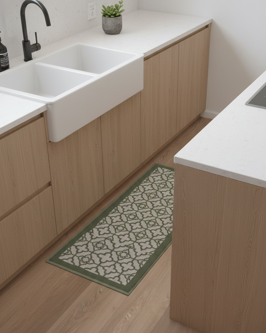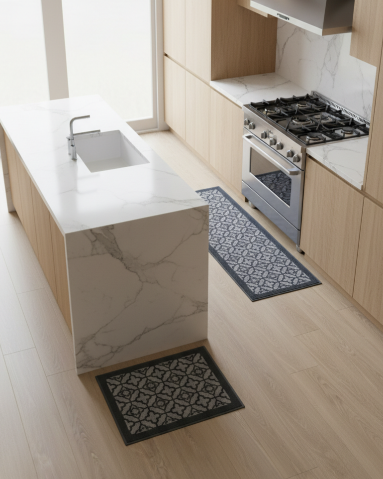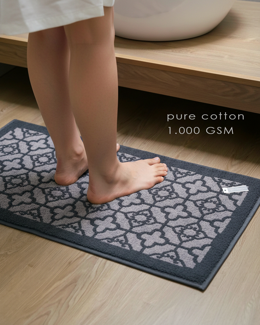 Menggunakan 100% premium cotton dengan ketebalan 1.000 GSM, Milano menawarkan daya serap yang optimal, tekstur lembut yang memanjakan kaki, serta pijakan yang stabil untuk menunjang aktivitas harian di dapur, kamar mandi, maupun area wastafel.
