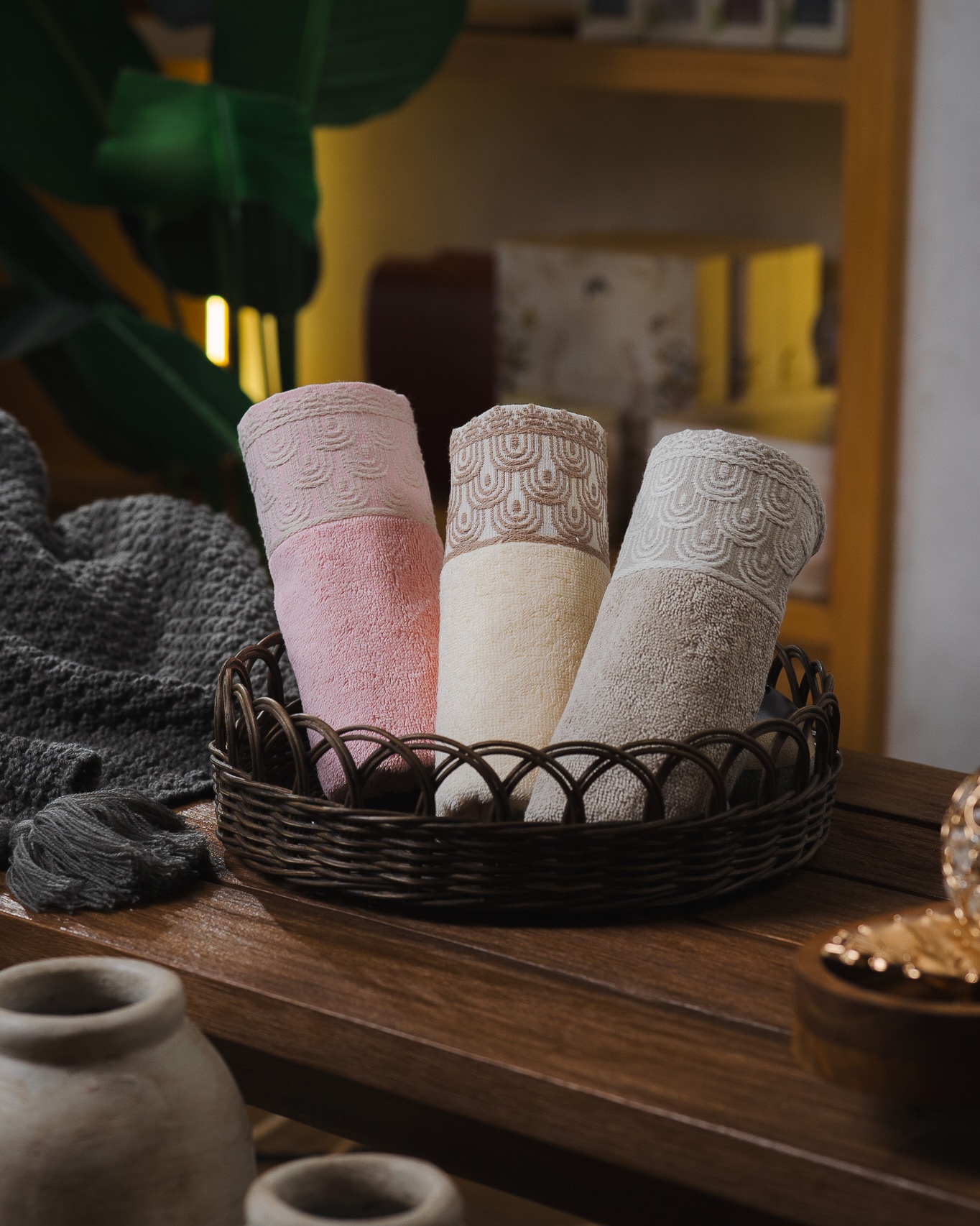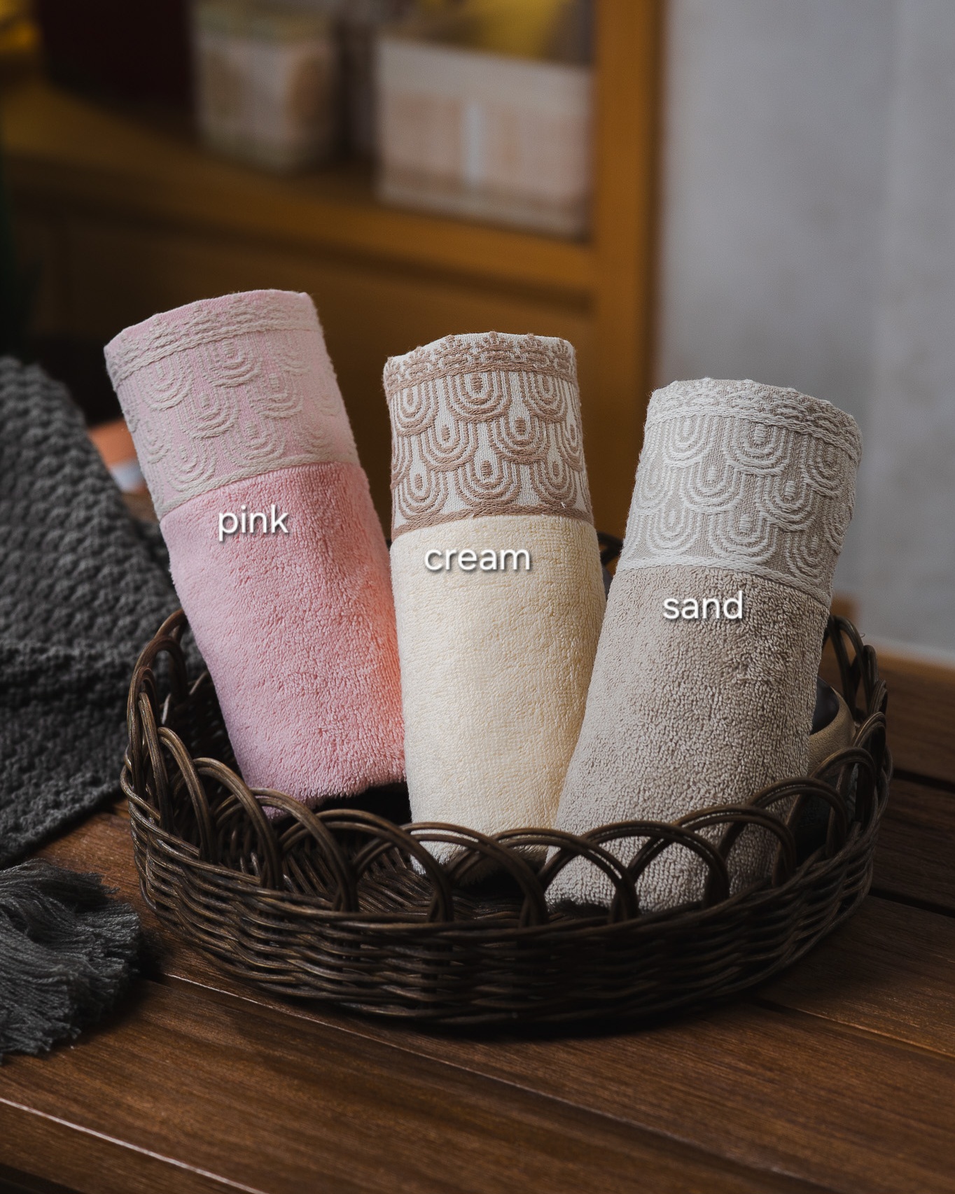 Motif swirl etnik pada list handuk Sora menghadirkan tampilan sporty yang tetap elegan. Dengan pilihan warna brown, red, dan blue, koleksi ini memancarkan energi, semangat, sekaligus gaya yang berkelas.
