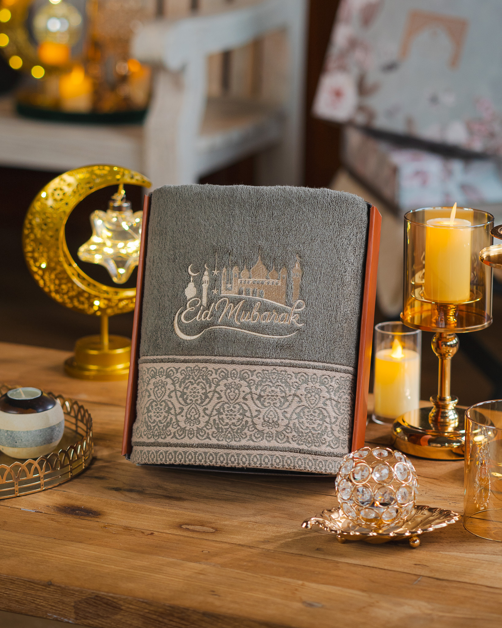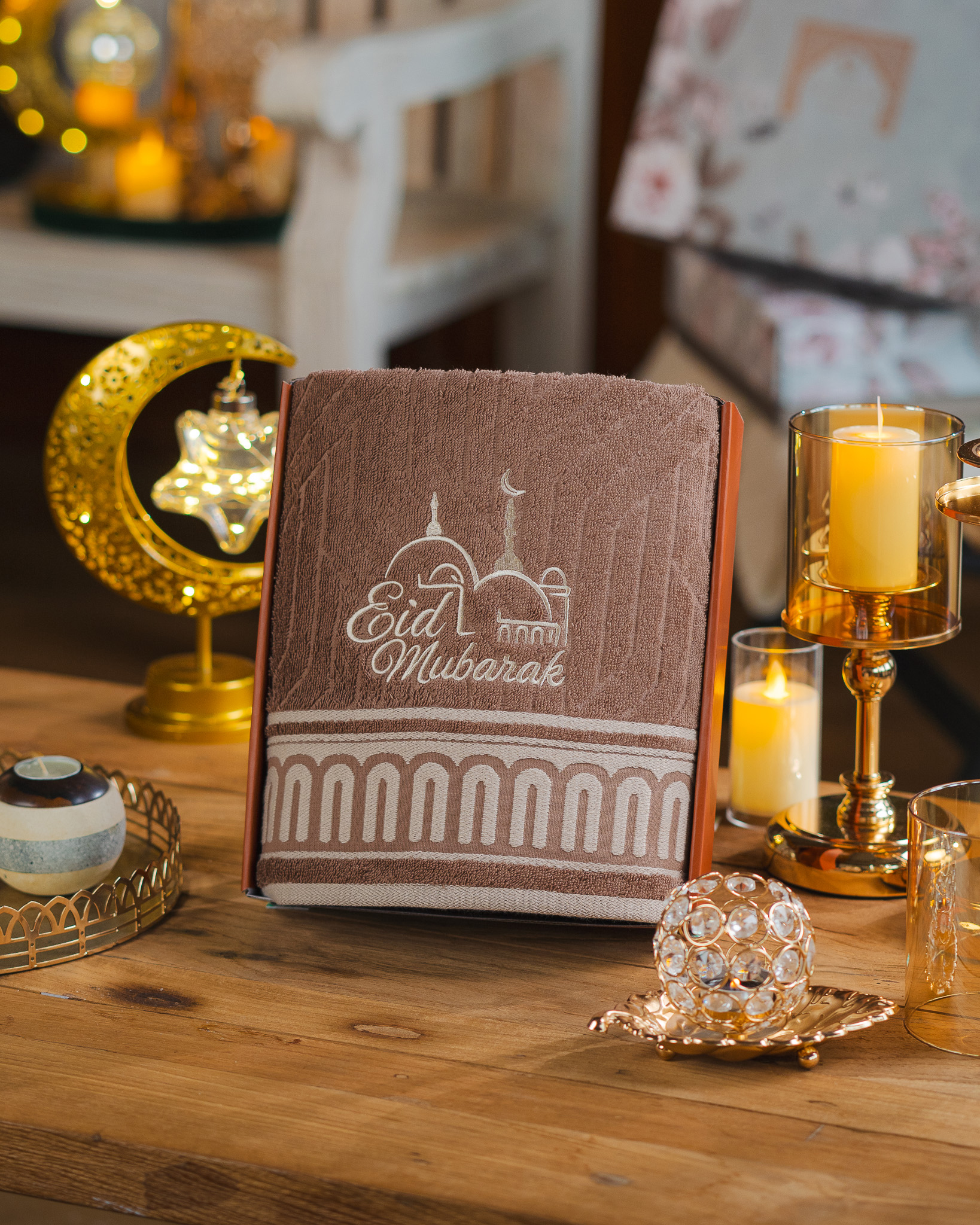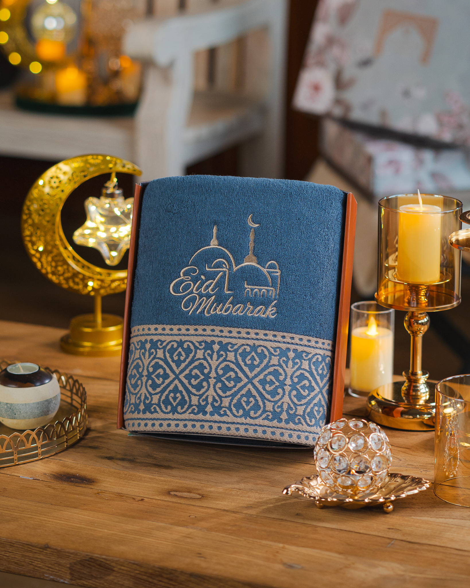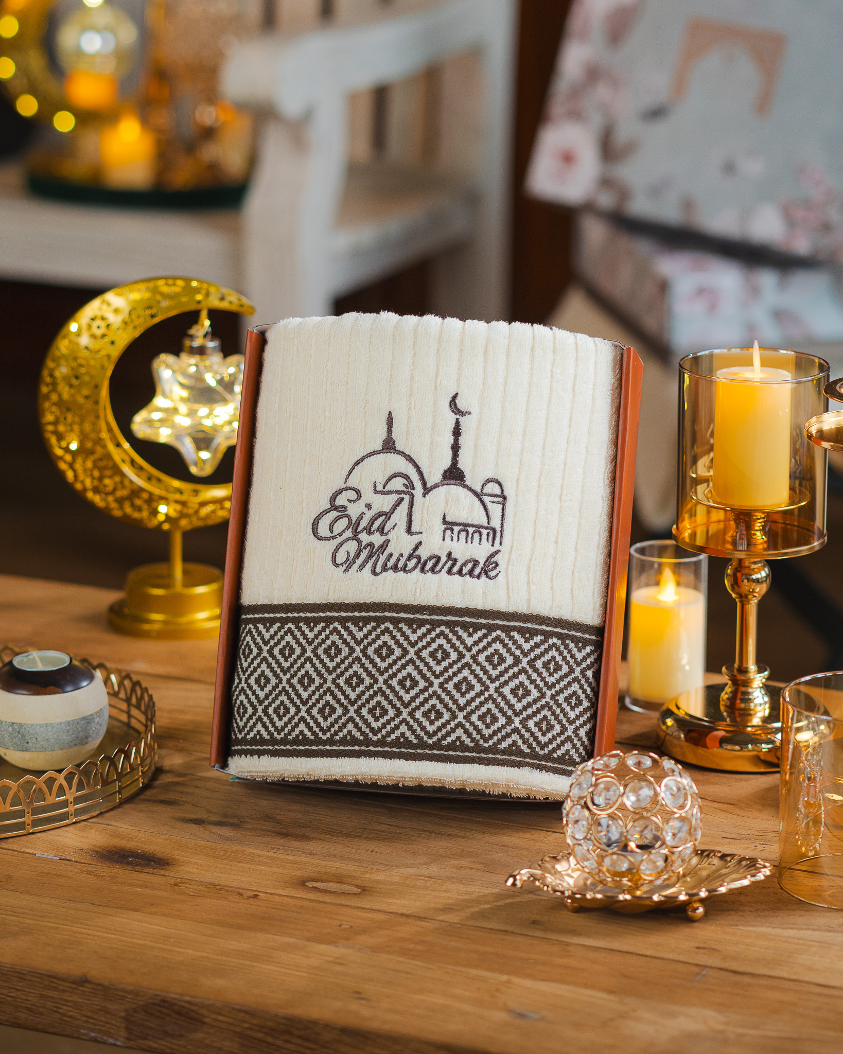 Featuring a premium bath towel finished with beautiful Eid Mubarak embroidery, each piece is carefully crafted to deliver comfort and lasting quality. Presented in an exclusive Eid Mubarak gift box with a matching greeting card, this gift is ideal for personal gestures, return gifts, and elegant bulk gifting.