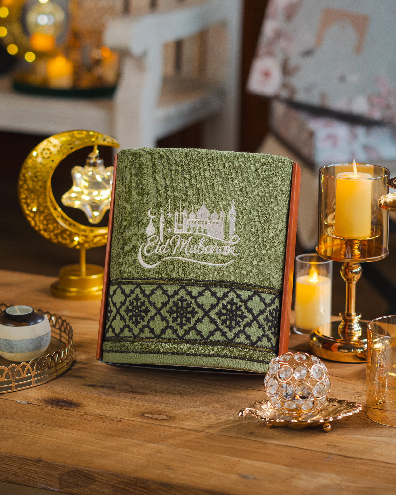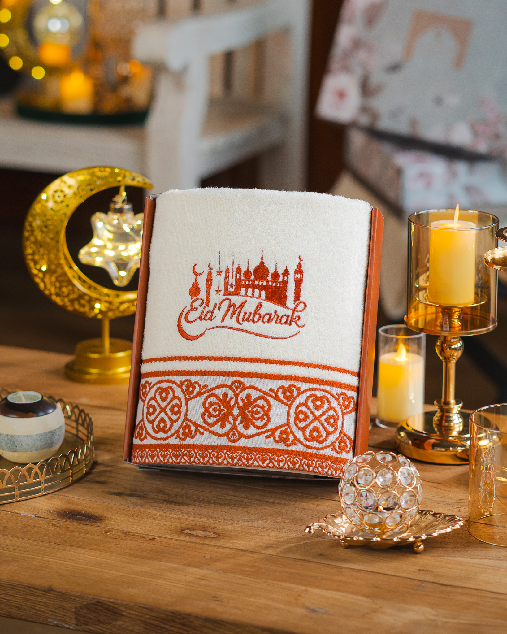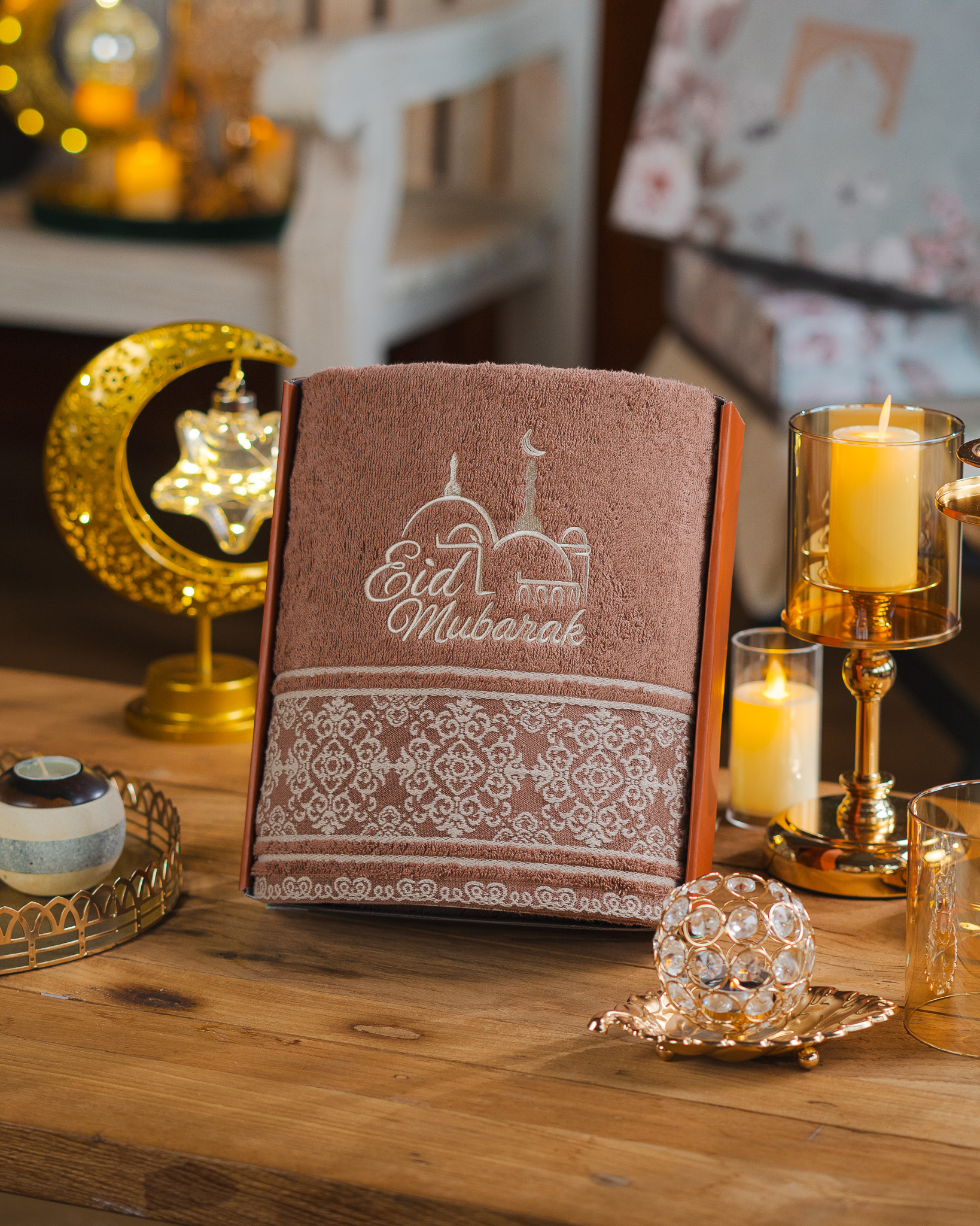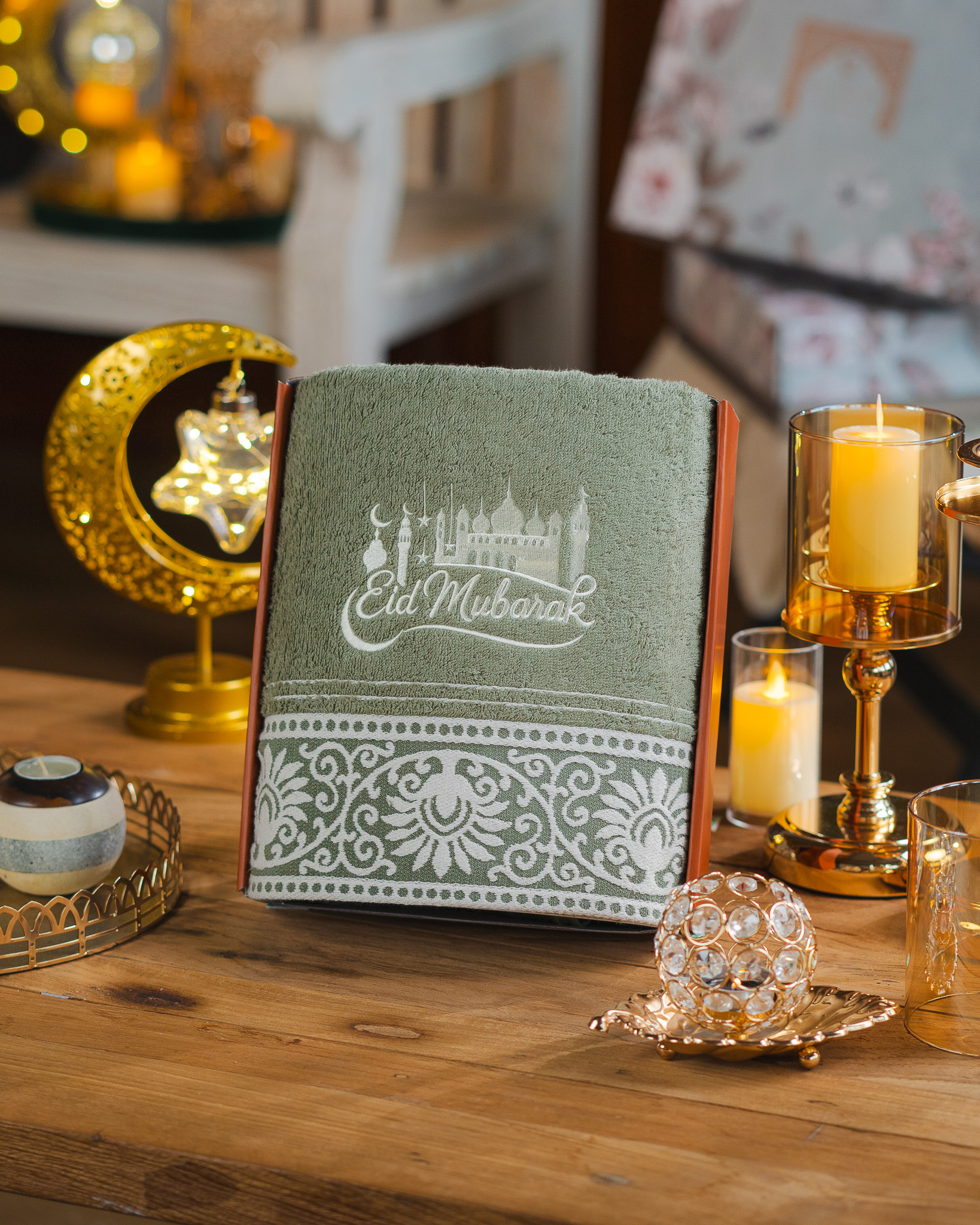 Featuring a premium bath towel finished with beautiful Eid Mubarak embroidery, each piece is carefully crafted to deliver comfort and lasting quality. Presented in an exclusive Eid Mubarak gift box with a matching greeting card, this gift is ideal for personal gestures, return gifts, and elegant bulk gifting.